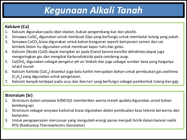 Kimia 12 Sifat Dan Macam Macam Logam Alkali Tanah