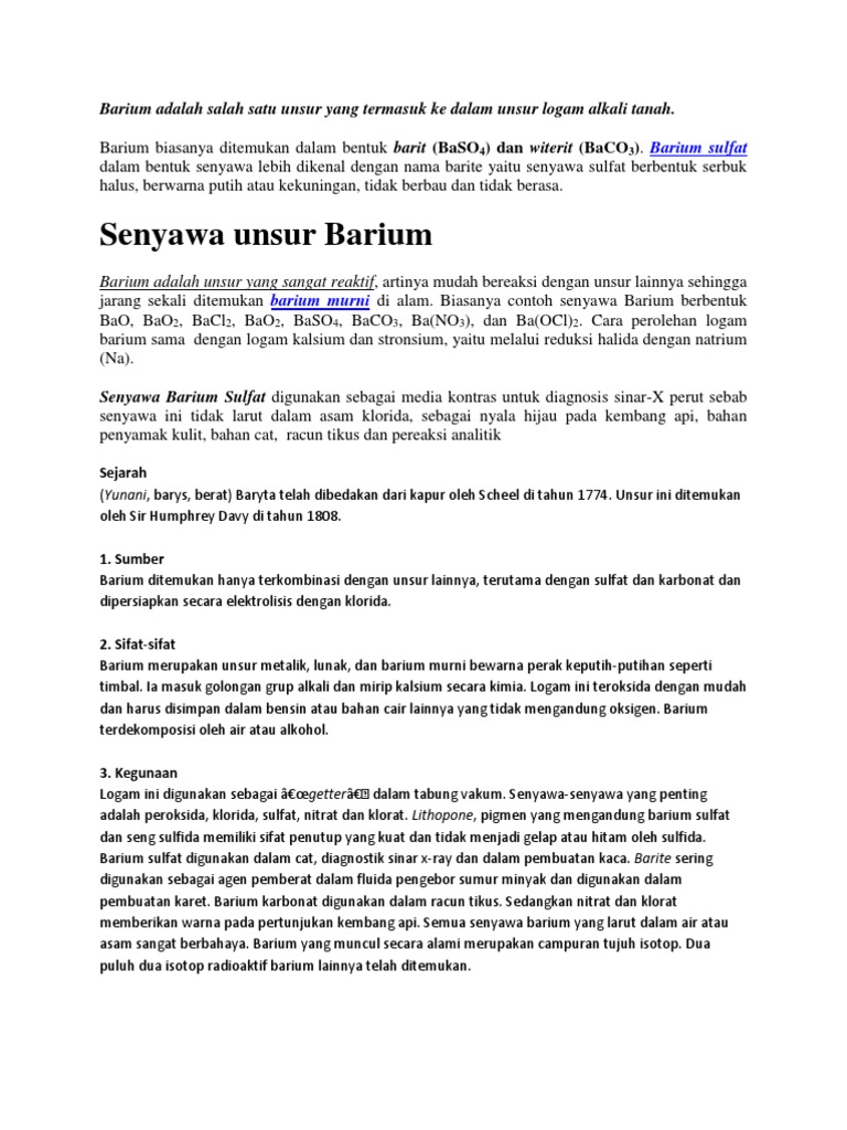 Barium Adalah Salah Satu Unsur Yang Termasuk Ke Dalam Unsur Logam