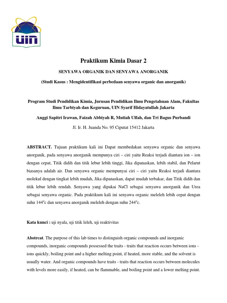 Kimia Organik Dan Anorganik 1 Hadiid Hadiid Academia Edu