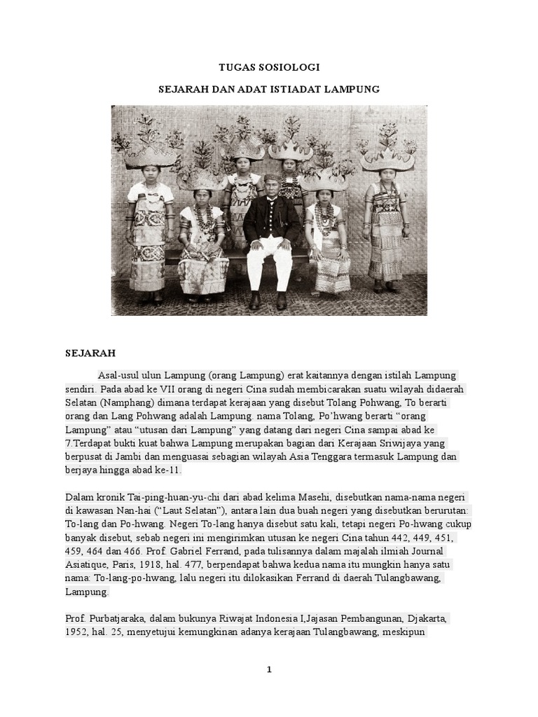 Asal Usul Orang Lampung Adat Istiadat Lampung