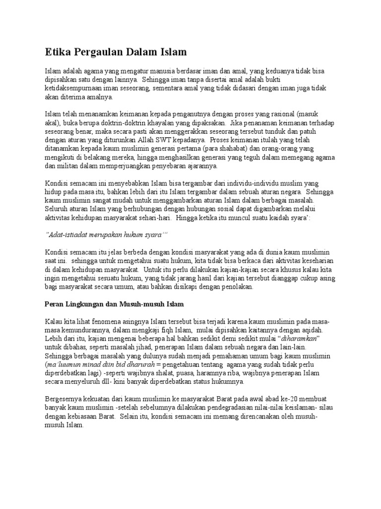 Etika Pergaulan Dalam Islam Atika