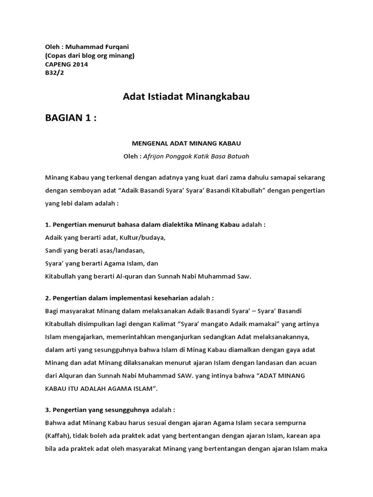 Berdasarkan historis budaya minangkabau berasal dari luhak nan tigo yang kemudian menyebar ke wilayah rantau di sisi barat timur utara dan selatan dari. Apakah ada di dalam sunnah larangan seorang.