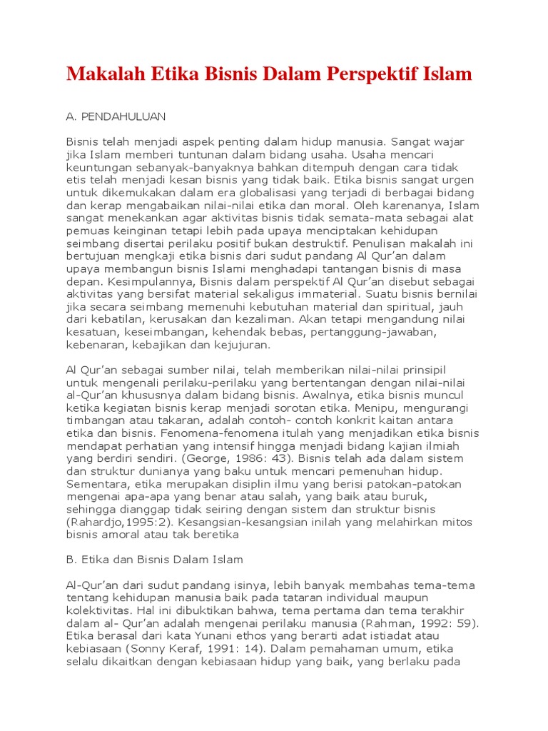Makalah Etika Bisnis Dalam Perspektif Islam Herdi