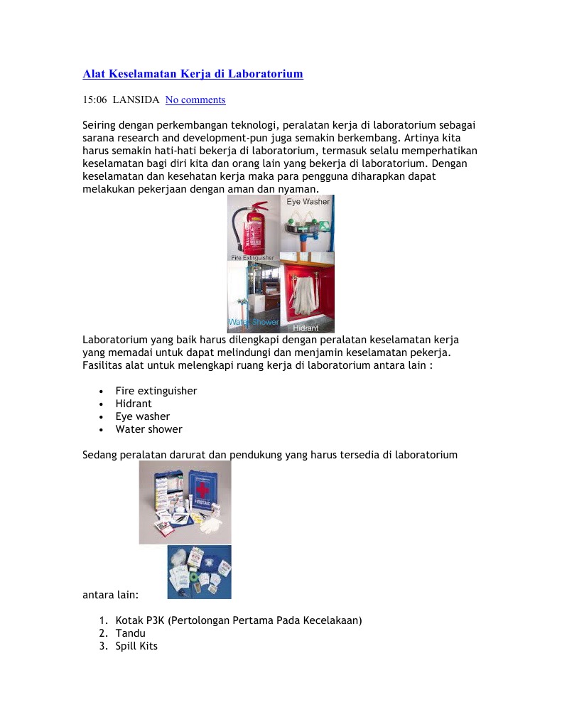 Alat Keselamatan Kerja Di Laboratorium Lansida