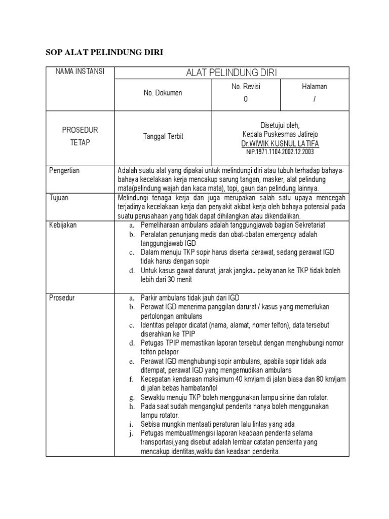 Sop Alat Pelindung Diri Docx Ipan