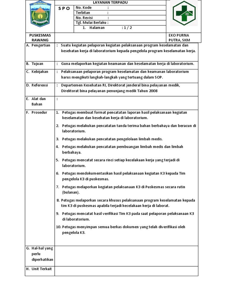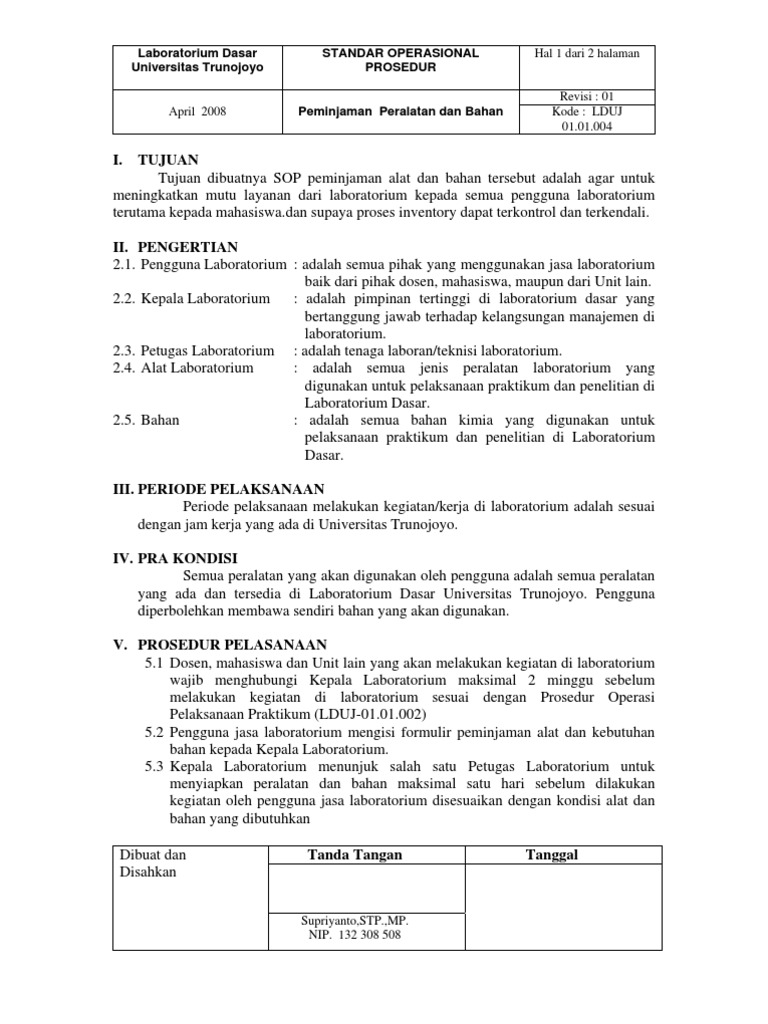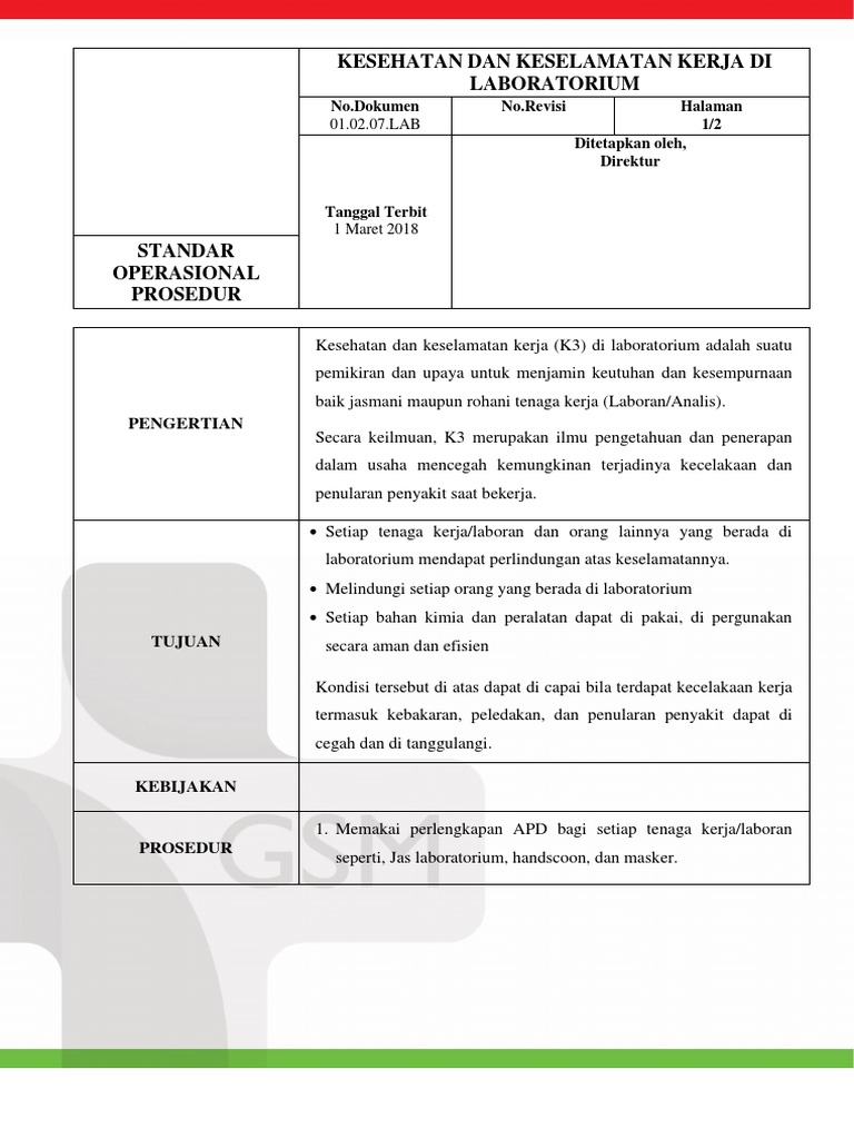 1 Sop Laboratorium Keselamatan Kerja Di Laboratorium