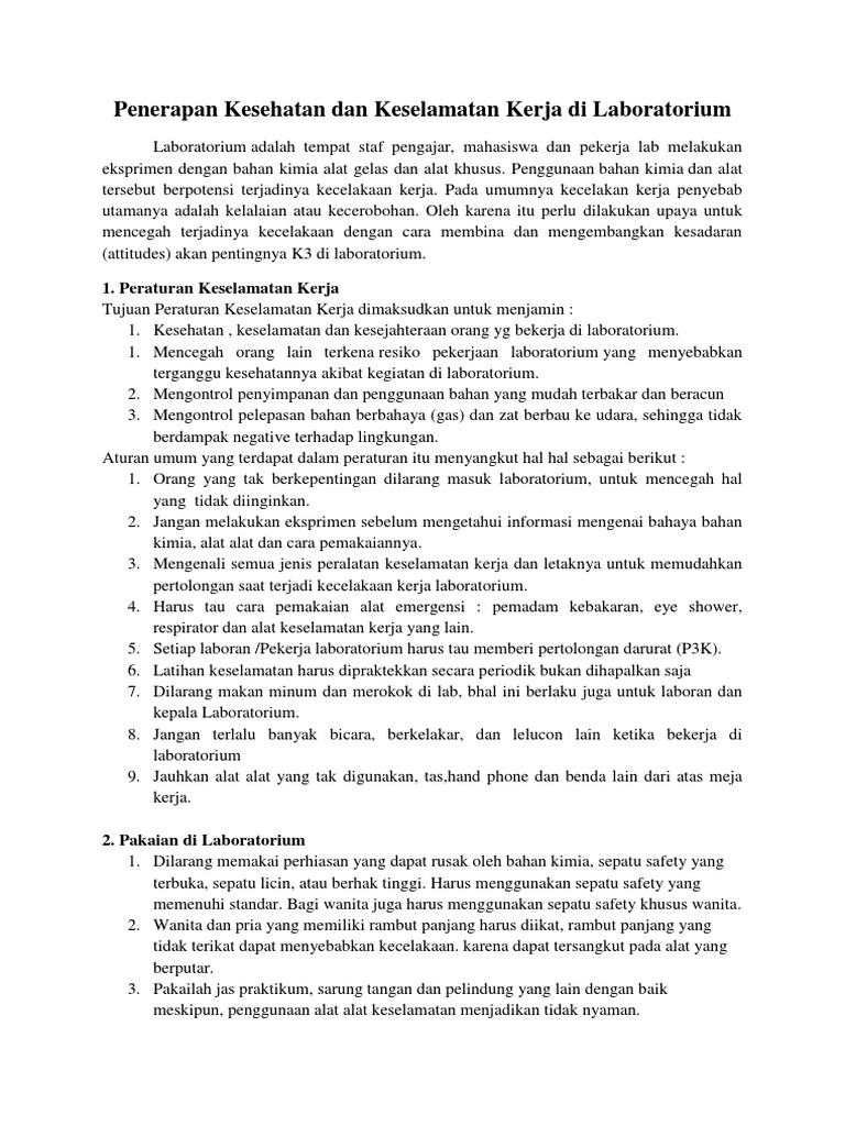 Kesehatan Dan Keselamatan Kerja K3 Di Laboratorium Blog