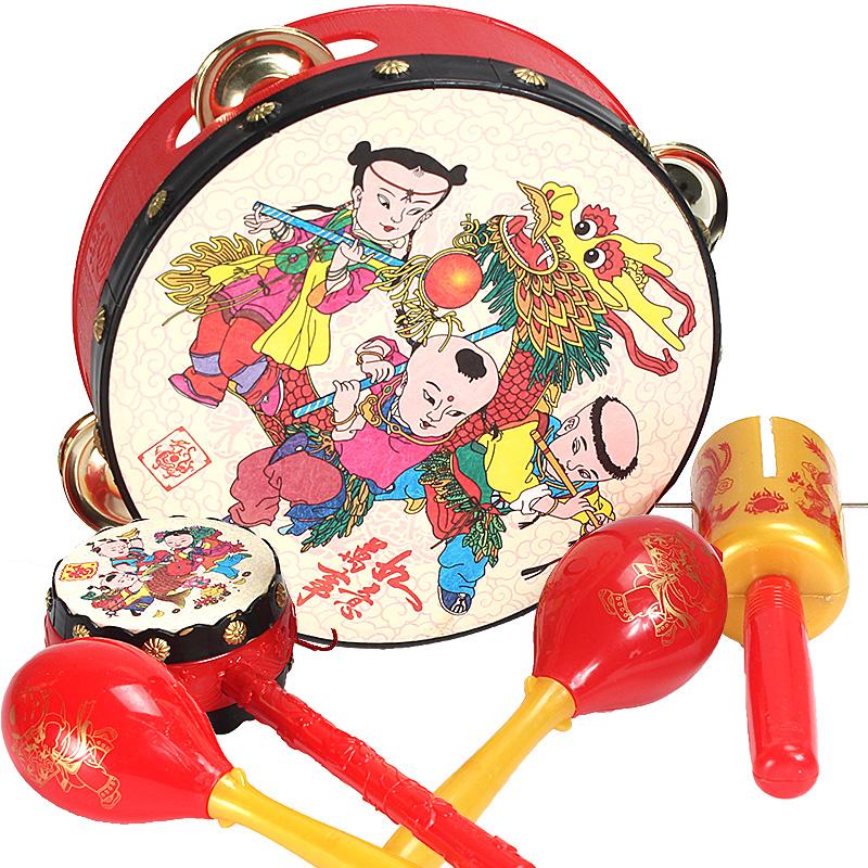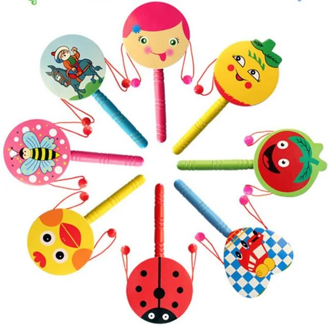 Bayi Anak Kartun Tangan Bell Mainan Kayu Rattle Drum Alat Musik Cina