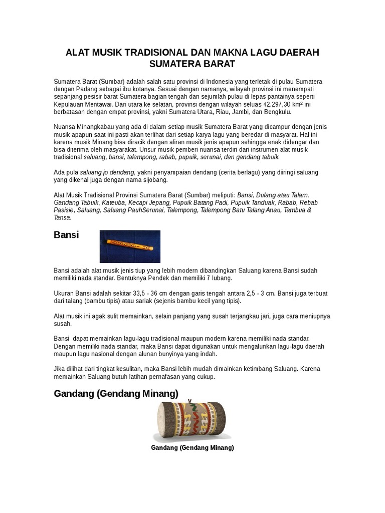Alat Musik Tradisional Provinsi Sumatera Barat Tentang Provinsi