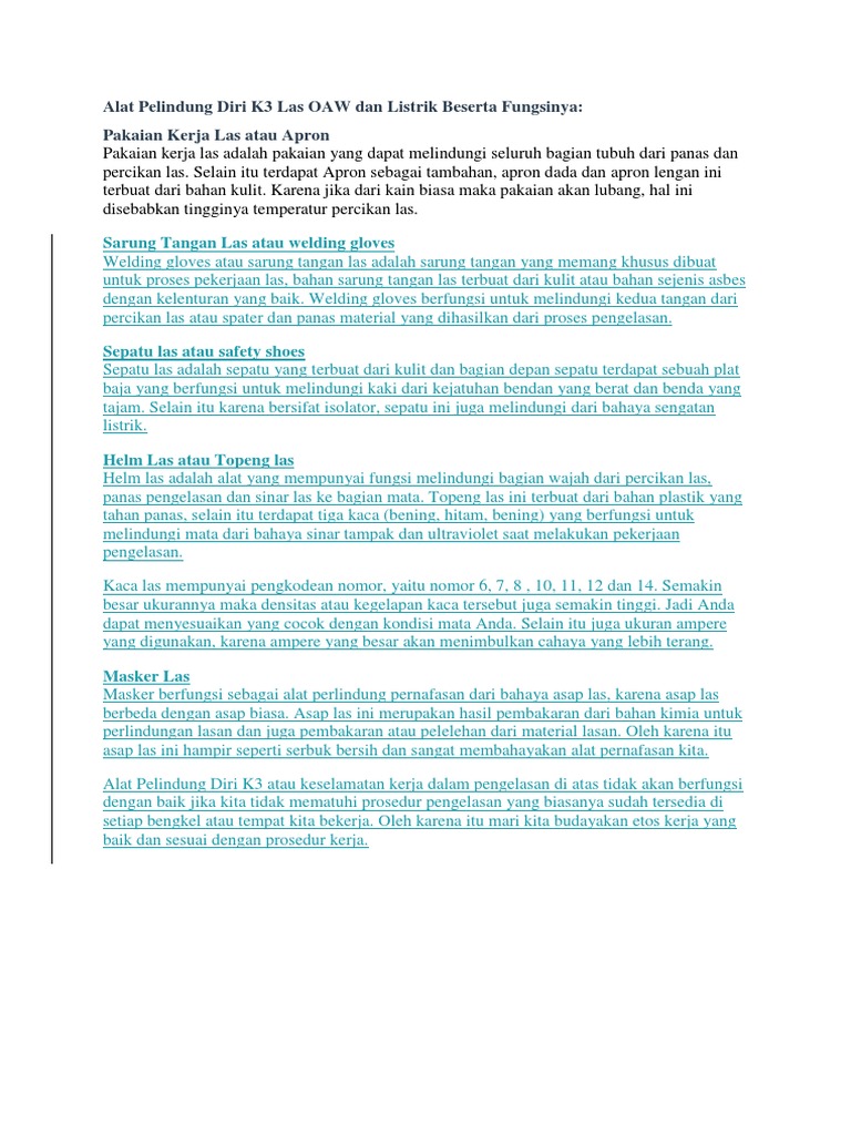 Alat Pelindung Diri K3 Dan Fungsinya Pdf