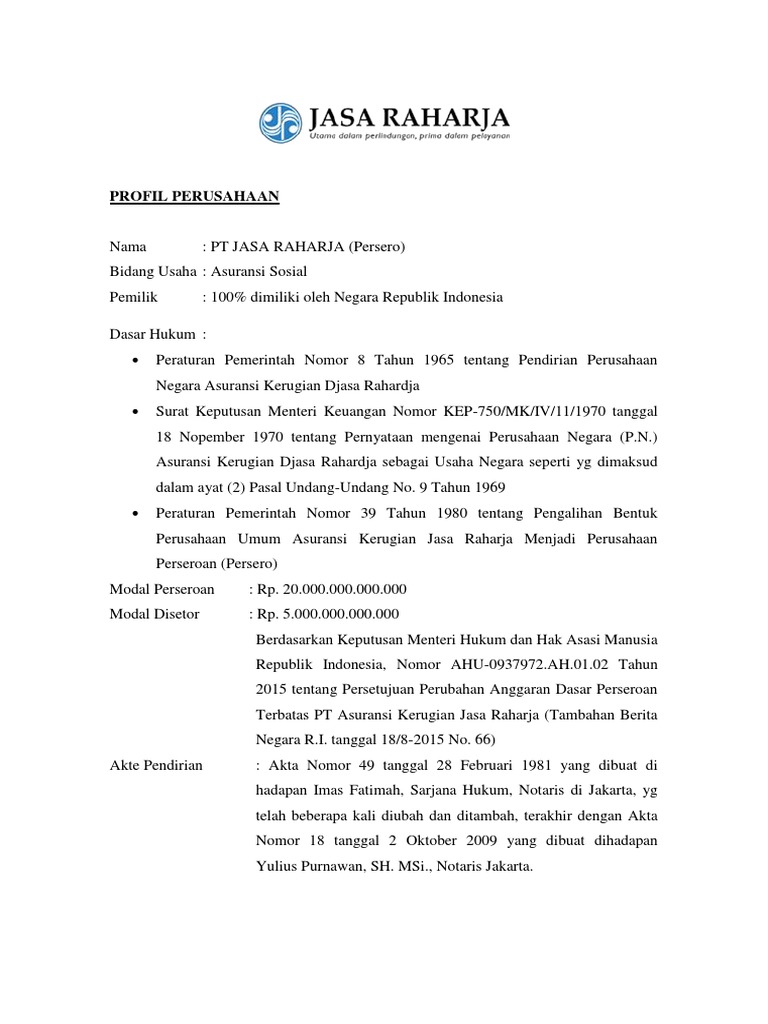 6 Bab Ii Gambaran Umum Perusahaan 2 1 Sejarah Umum Pt Jasa Raharja