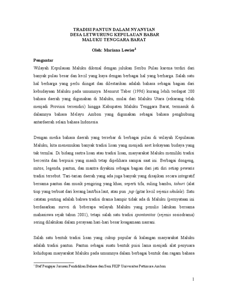 Tradisi Pantun Dalam Nyanyian Desa Letwurung