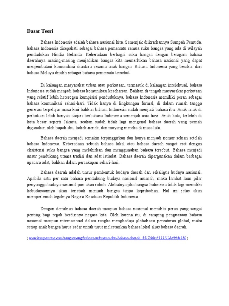 Dasar Teori Bahasa Daerah Docx