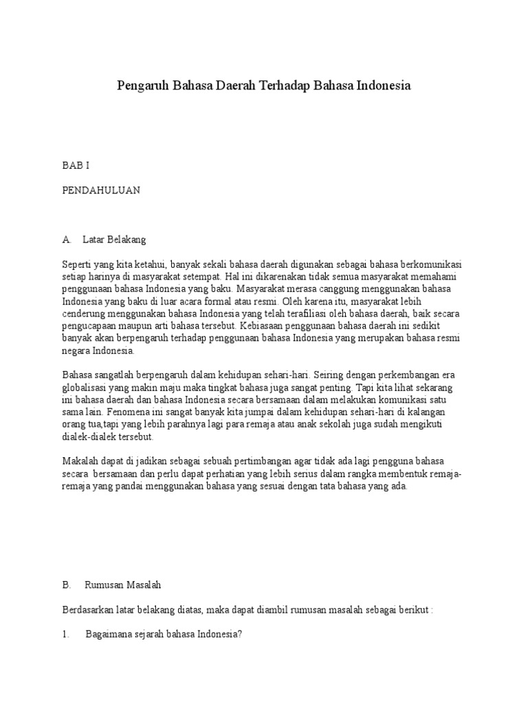 Pengaruh Bahasa Daerah Terhadap Bahasa Indonesia