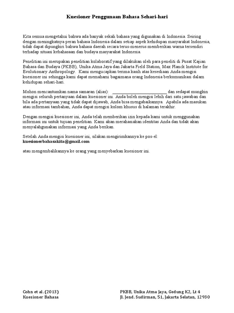 Kuesioner Penggunaan Bahasa Sehari Hari Pdf