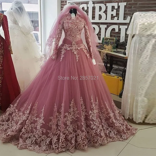 Jubah De Mariee 2017 Pink Turki Islamic Wedding Dresses Dengan Gaun