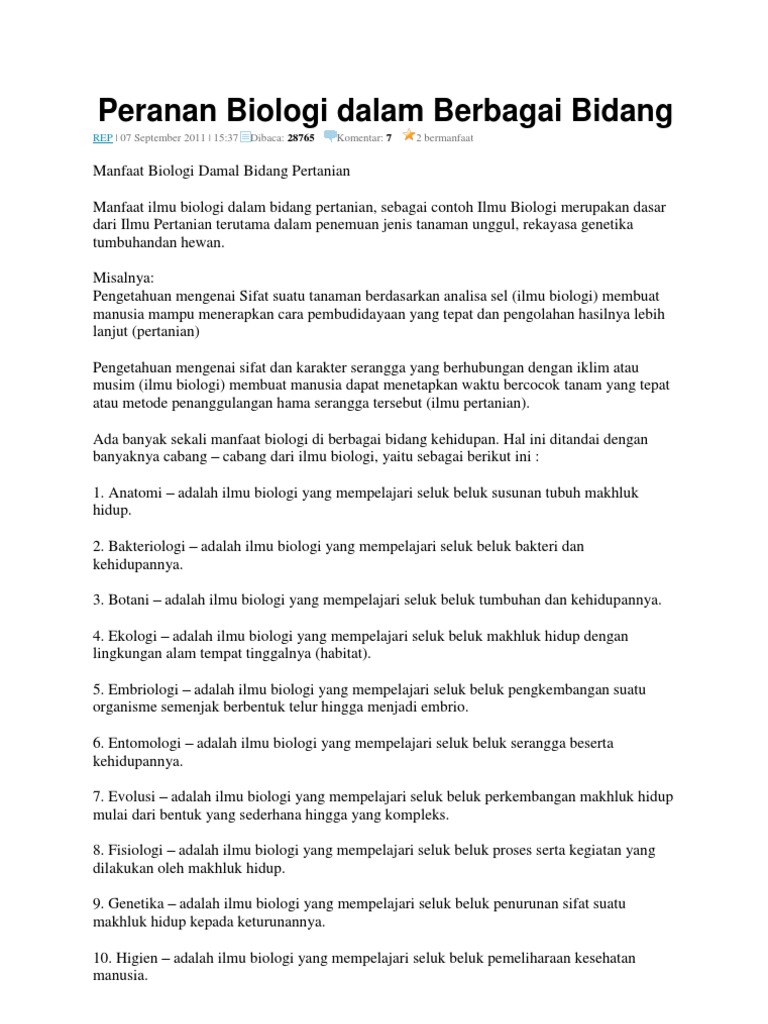 Manfaat Ilmu Biologi Catatan Tentang Ilmu Biologi Dan Pembahasannya