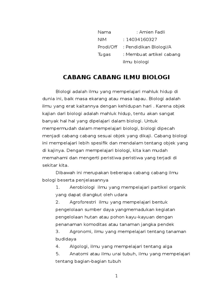 Cabang Cabang Ilmu Biologi Endah Q Academia Edu