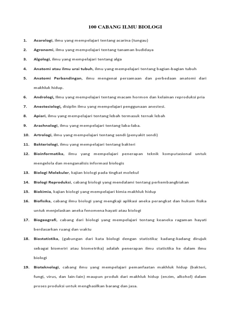 100 Cabang Biologi Dan Artinya Docx