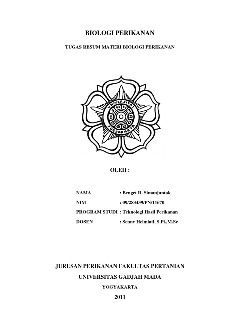 1 Biologi Perikanan Kontrak Kuliah Dan Pengenalan Materi Biologi