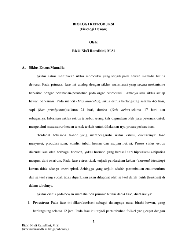 Biologi Reproduksi Siklus Estrus Rizki Ramdhini Academia Edu