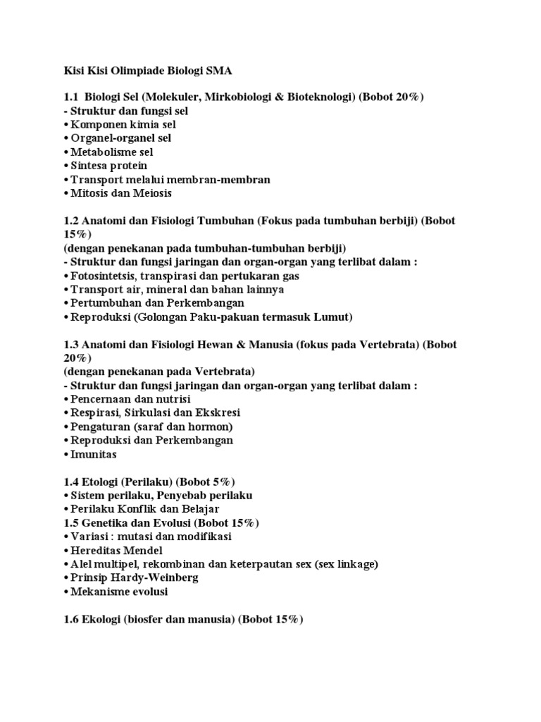 Soal Olimpiade Biologi Sma Biologi Sel Dan Molekuler Pdf Free