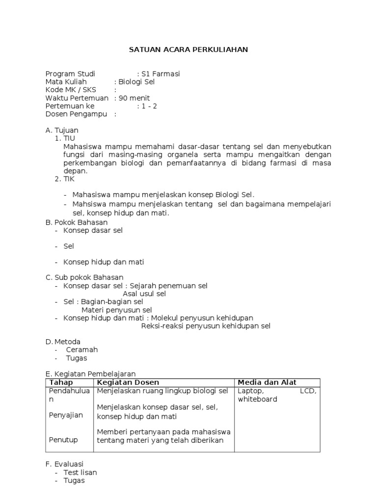 Integrasi Konsep Biologi Sel Pada Jurusan Farmasi Pdf