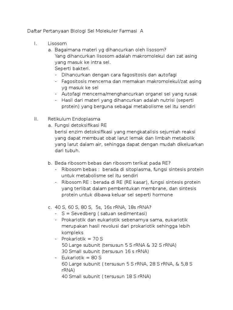 Daftar Pertanyaan Biologi Sel Molekuler Farmasi A