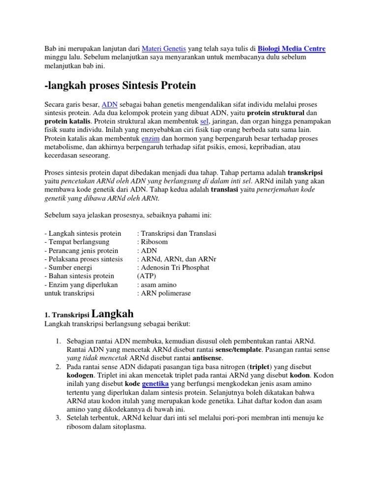 Sintesis Protein Dan Kode Genetik Biologi Sel