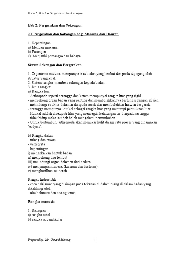 Topik 2 Pergerakan Dan Sokongan Biologi Spm Tingkatan 5
