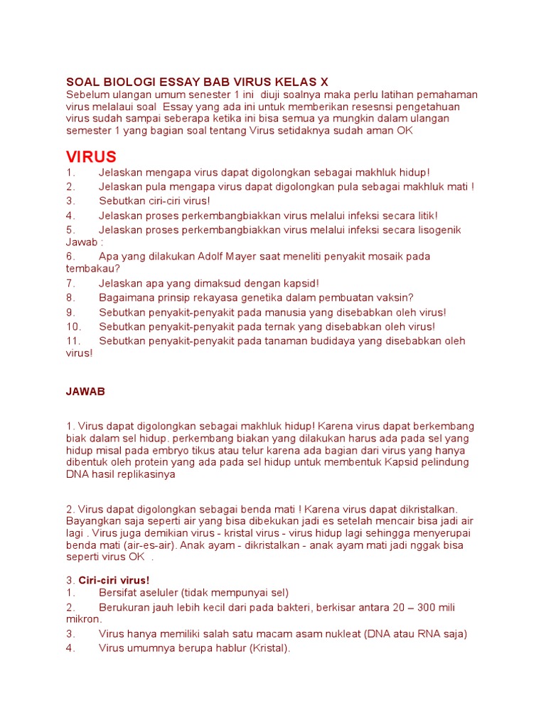 Biologi Gonzaga Soal Essay Virus Kelas X