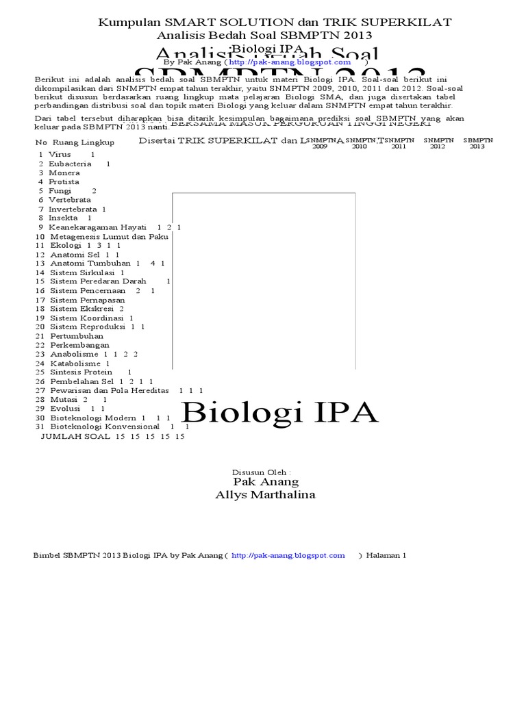 Analisis Bedah Soal Sbmptn 2013 Biologi Ipa Pdf