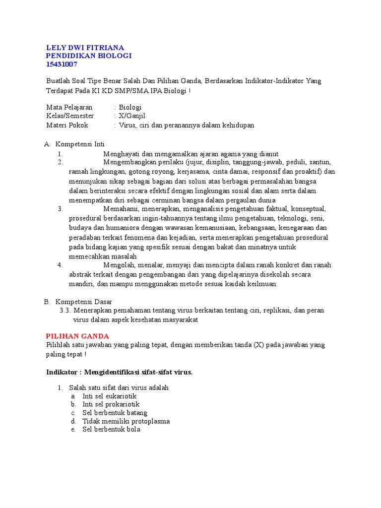 Latihan Soal Biologi Tentang Virus Standar Sbmptn Lean Konsep