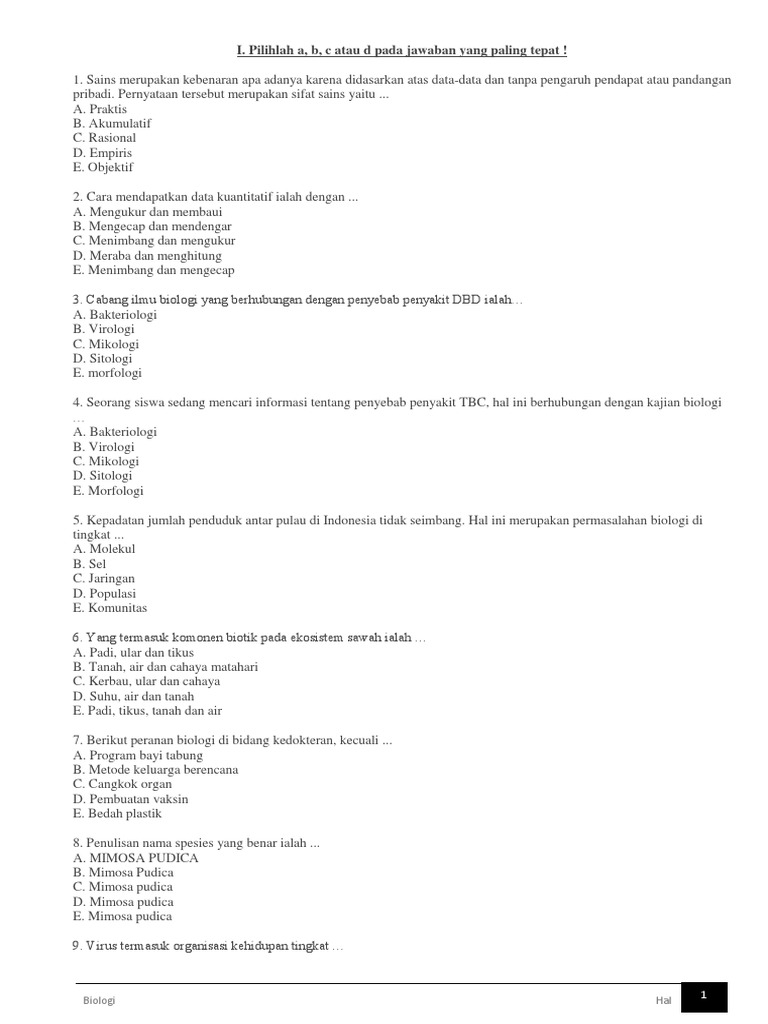 Biologi Gonzaga Soal Biologi Bab 1 2 Kelas X 2016