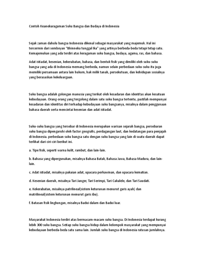 Contoh Keanekaragaman Suku Bangsa Dan Budaya Di Indonesia