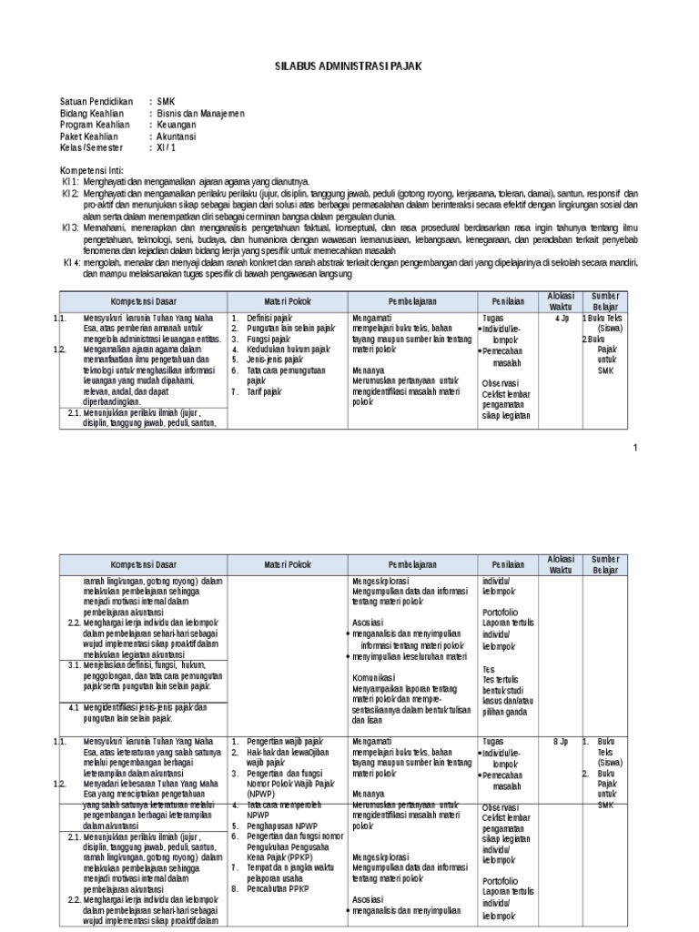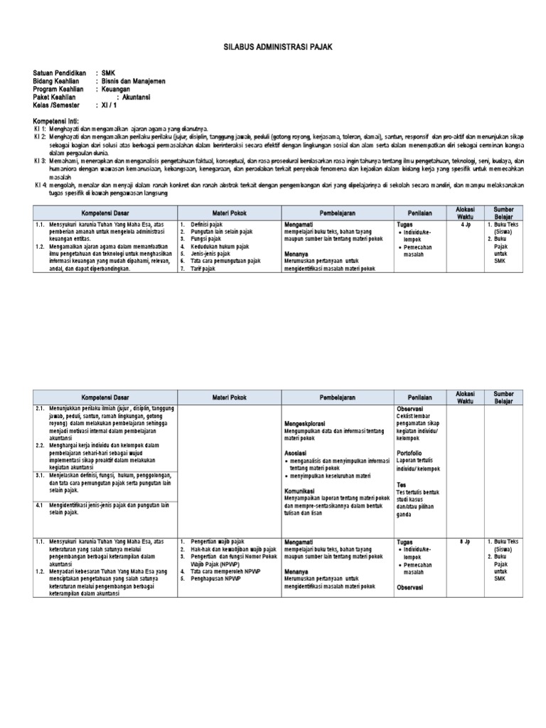 Silabus Smk Kelas Xi Sebelas Semester 1 Administrasi Pajak