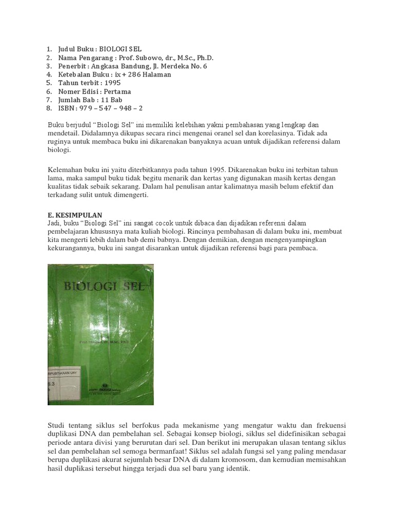 Resensi Buku Biologi Sel Catatan Gupita