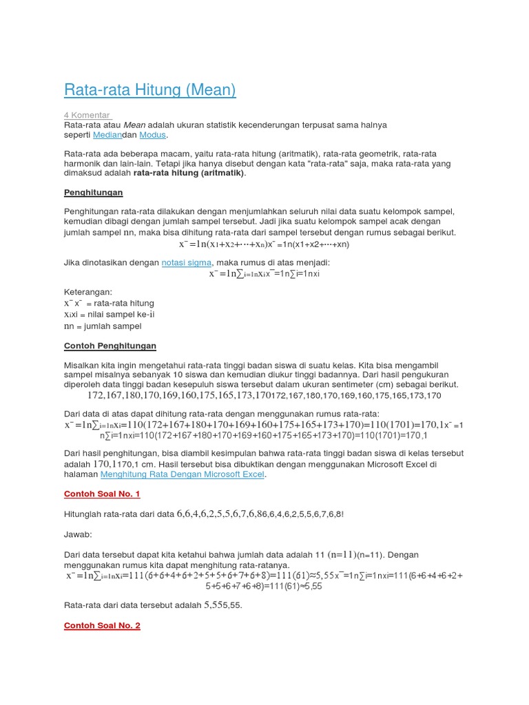 Rumus Statistik Rata Rata Hitung Mean Dewi Astuti Academia Edu