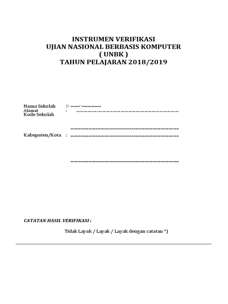 Instrumen Verifikasi Unbk 2019