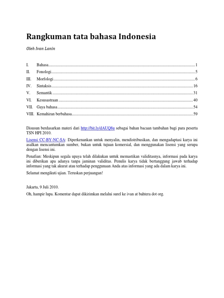 Rangkuman Tata Bahasa Indonesia