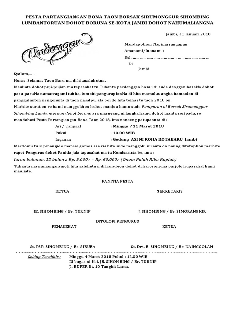 Undangan Partangiangan Punguan Simorangkir Docx Bayu Sugara