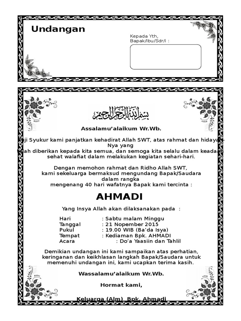 Download Contoh Undangan Tahlil Haul 40 Hari Ms Word Gratisiana Net