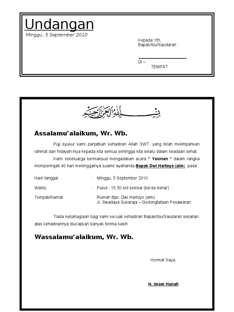 Contoh Surat Undangan Tahlil 40 100 1000 Hari Haul Love Dating