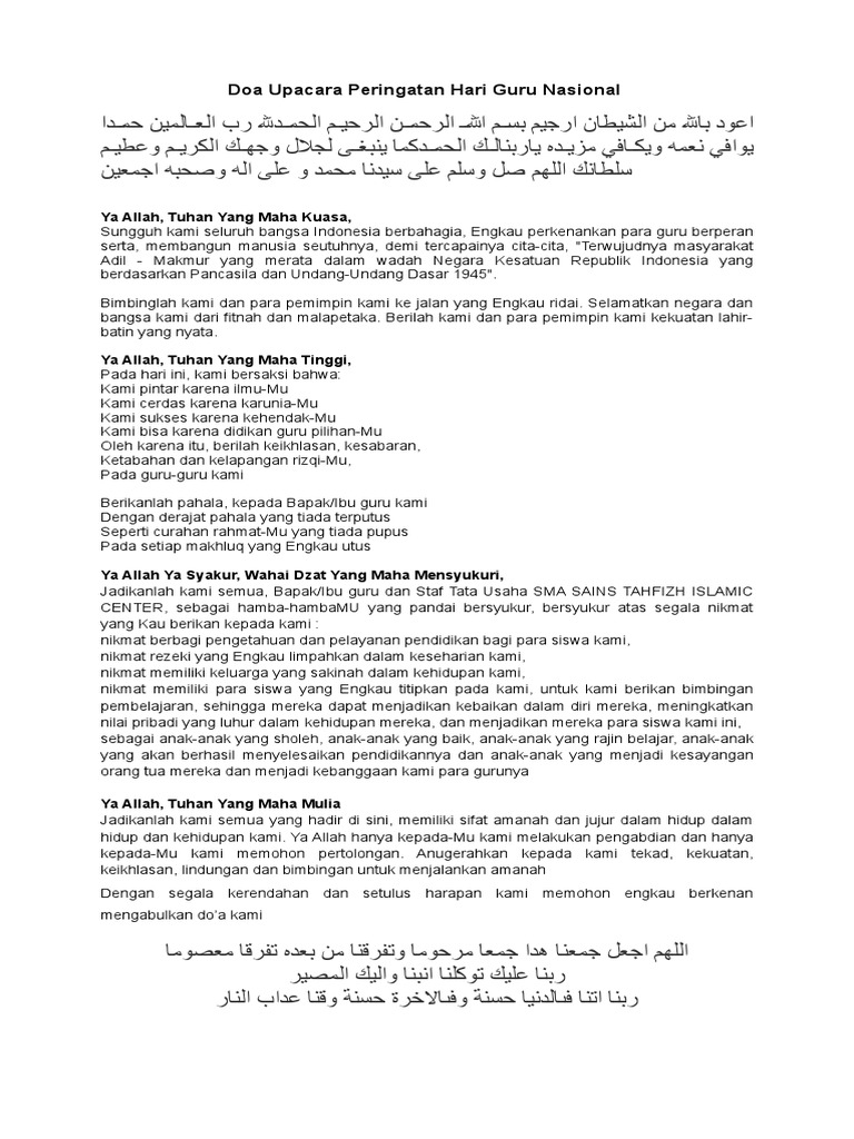 Mari Selipkan Doa Untuk Guru Guru Kita Satu Teladan Pelajar