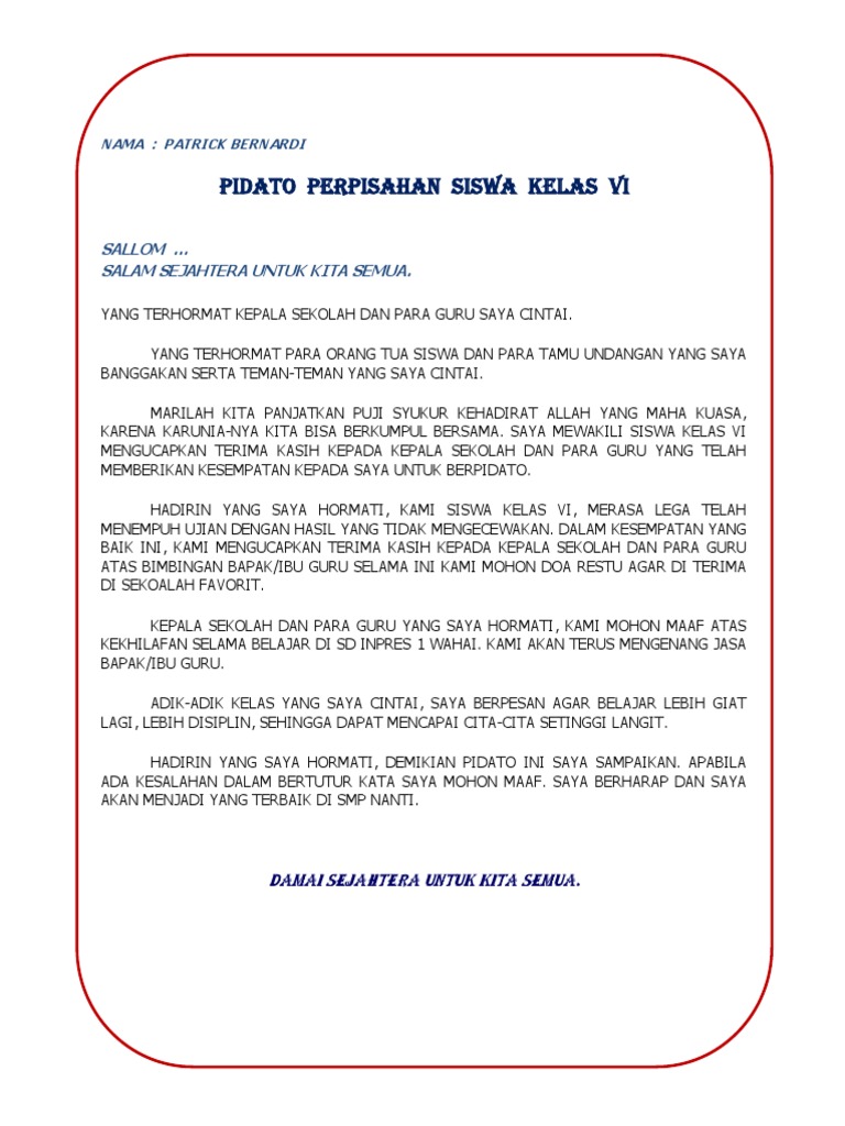 Pidato Kesan Dan Pesan Dari Siswa Yang Meninggalkan