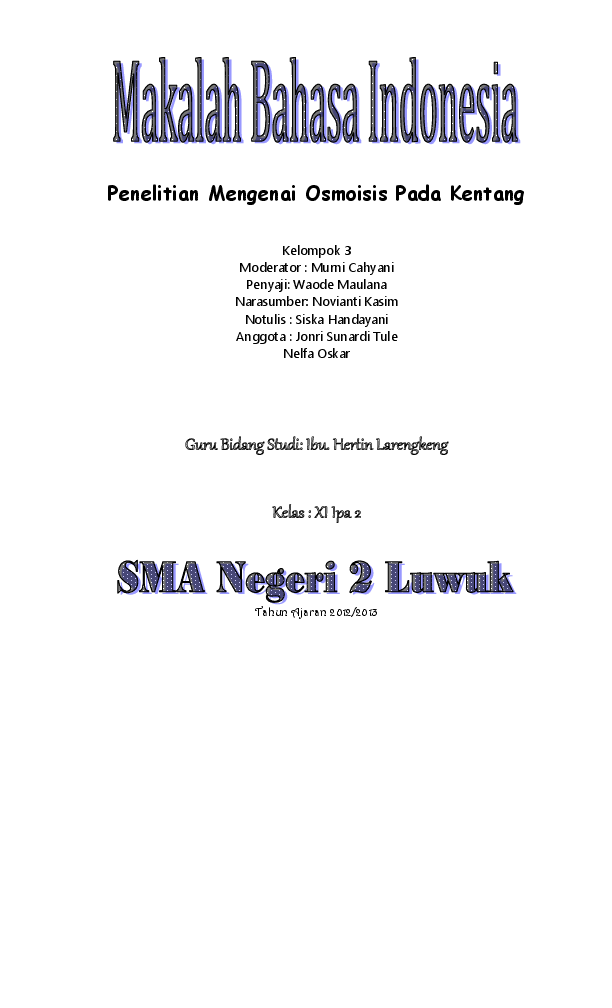 Penelitian Mengenai Osmoisis Pada Kentang Docx Murni Cahyani
