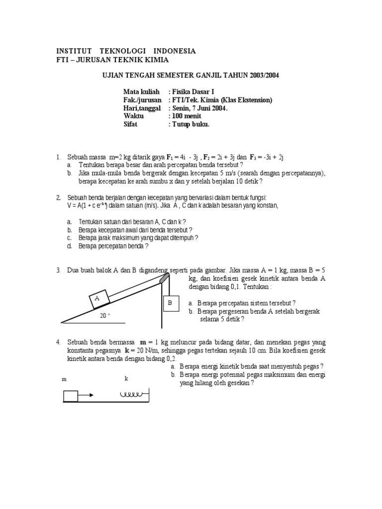 Hari ini admin akan membagikan soal latihan tpb mata kuliah fisika dasar.