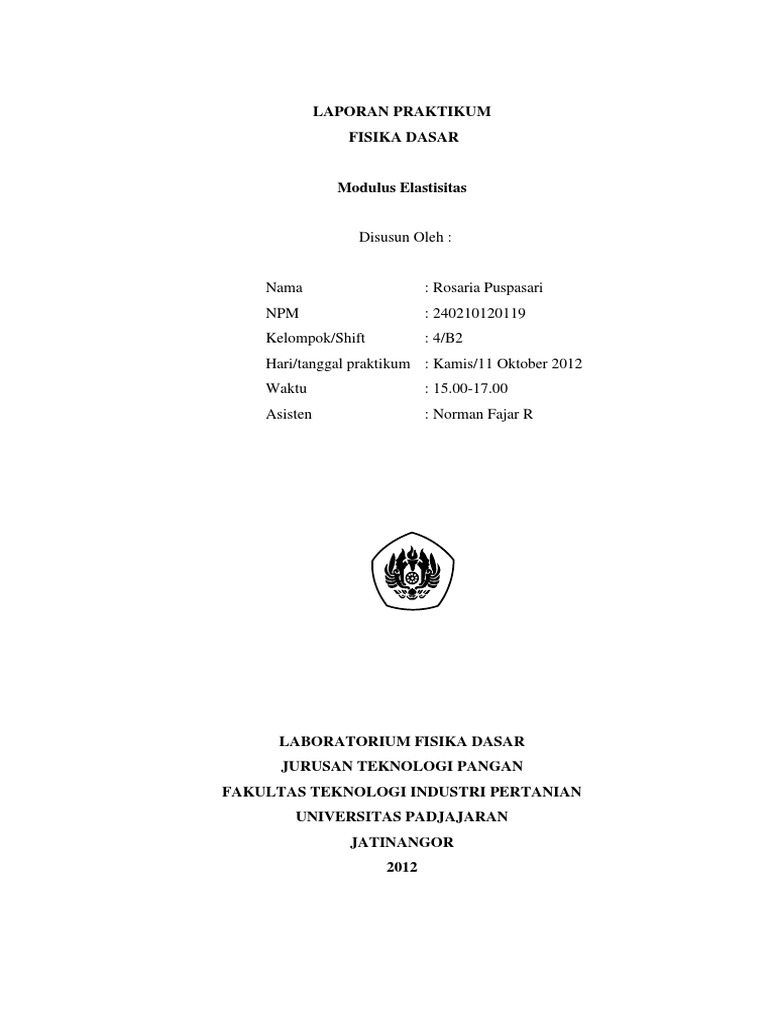 Laporan Praktikum Fisika Dasar Modul 4 Modulus Elastisitas Nbsp