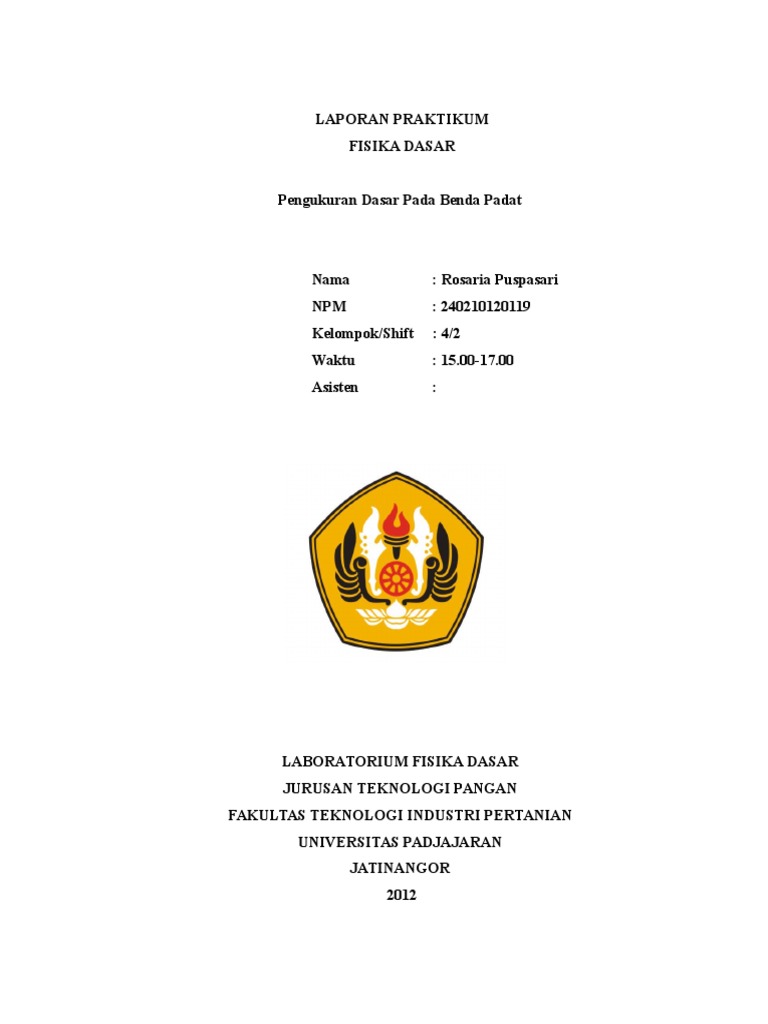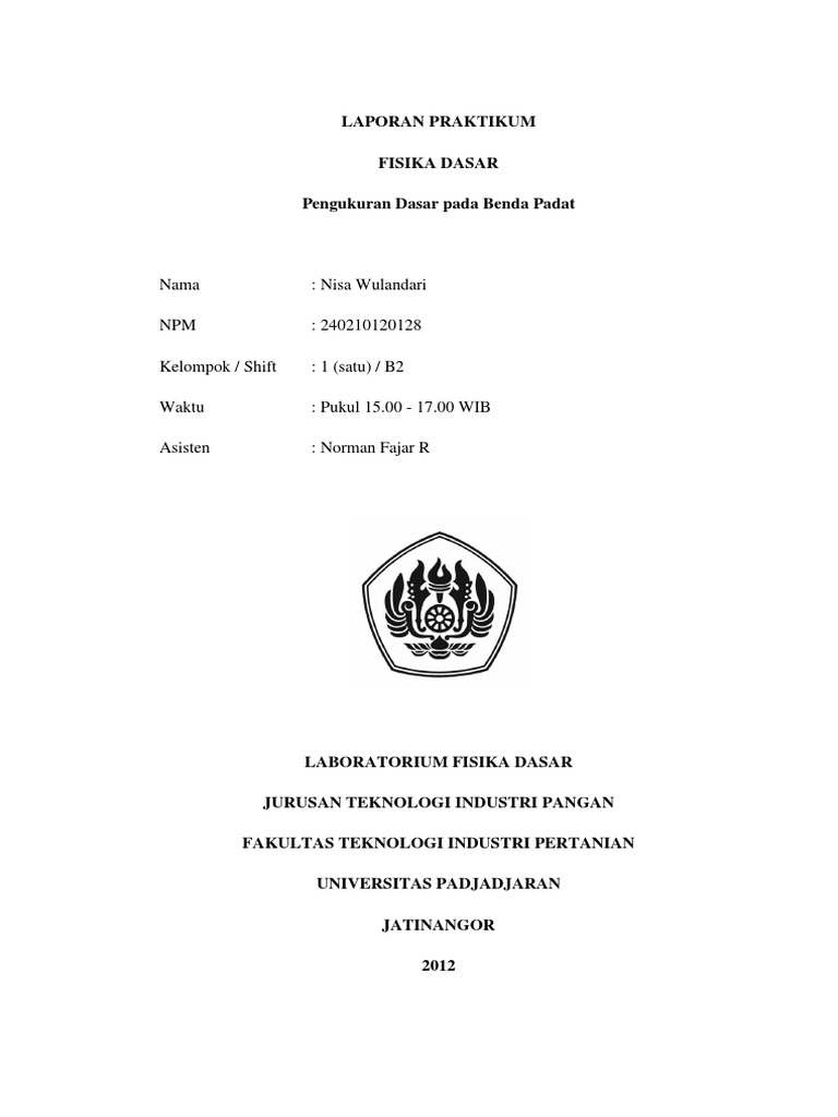 Laporan Topik Fisika Dasar Semester 1 Ilmu Dan Teknologi Pangan Uns
