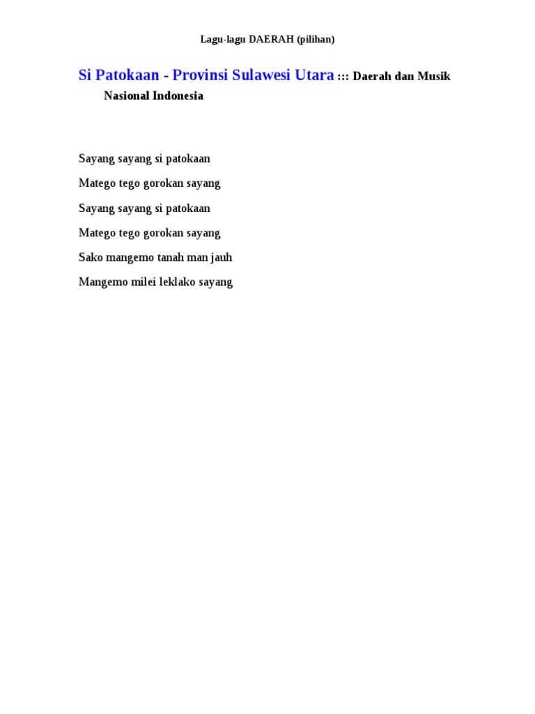 34 Provinsi Lirik Lagu Daerah Di Indonesia